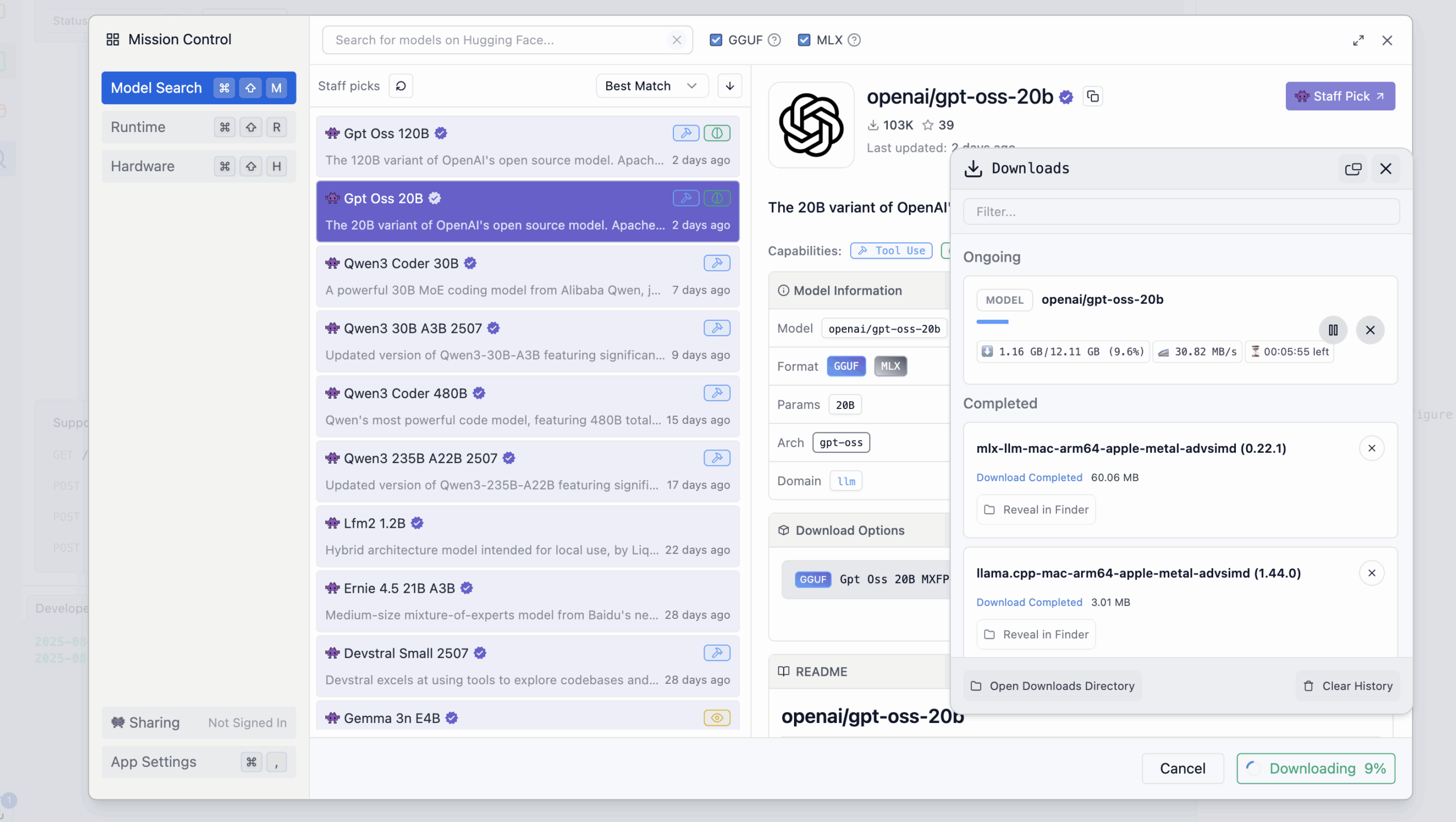 Ctrl + Shift + Mpour accéder au gestionnaire de modèles. - Recherchez gpt-oss.