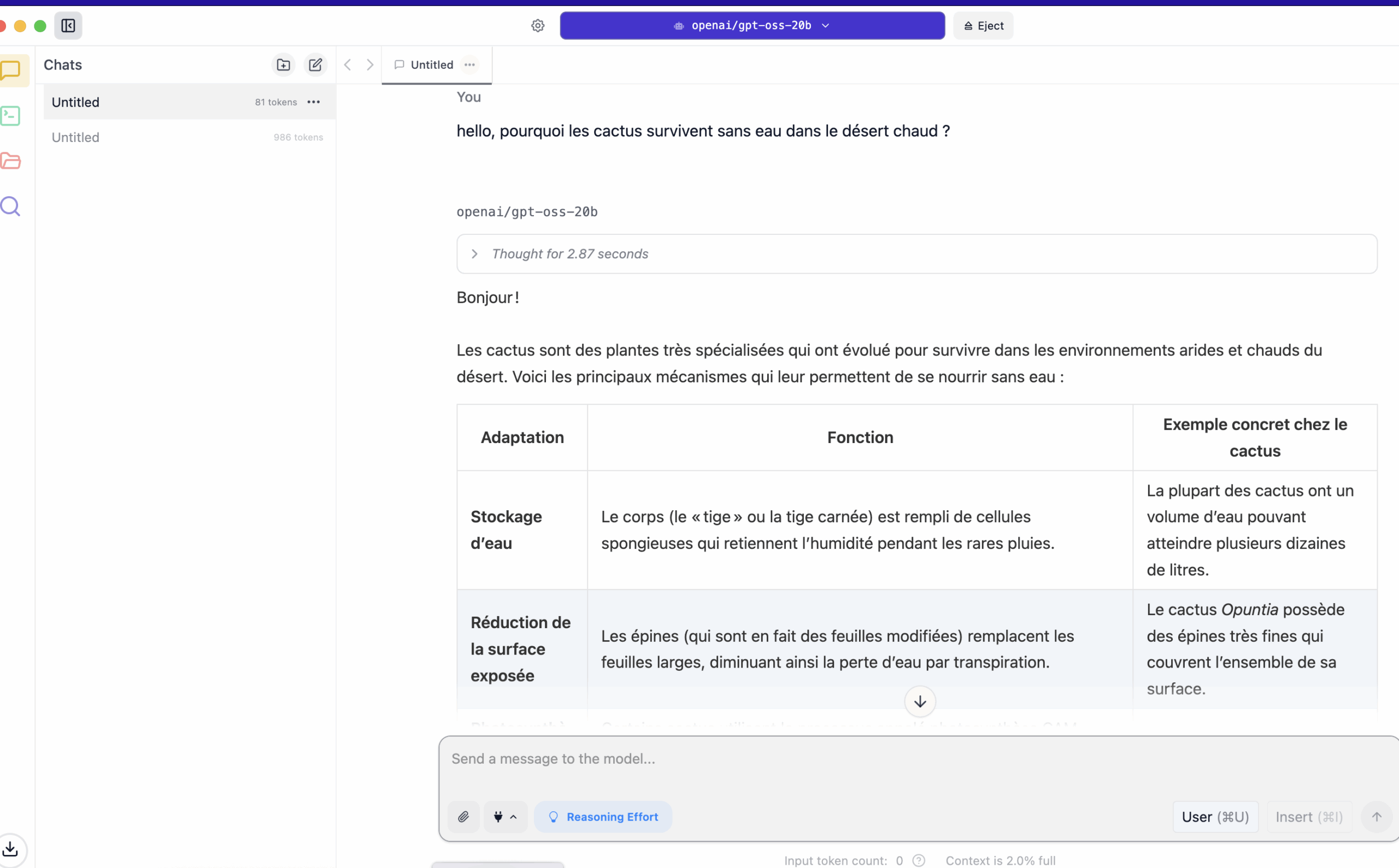 Prévoyez également 15 Go d’espace disque libre pour télécharger le modèle 20B. Le modèle 120B dépasse quant à lui les 60 Go. - Logiciel : Une version récente de macOS est recommandée. Vous pouvez utiliser Ollama, LM Studio, ou les deux. Ces outils sont compatibles macOS. Il vous faudra aussi accéder au Terminal pour certaines commandes de base.